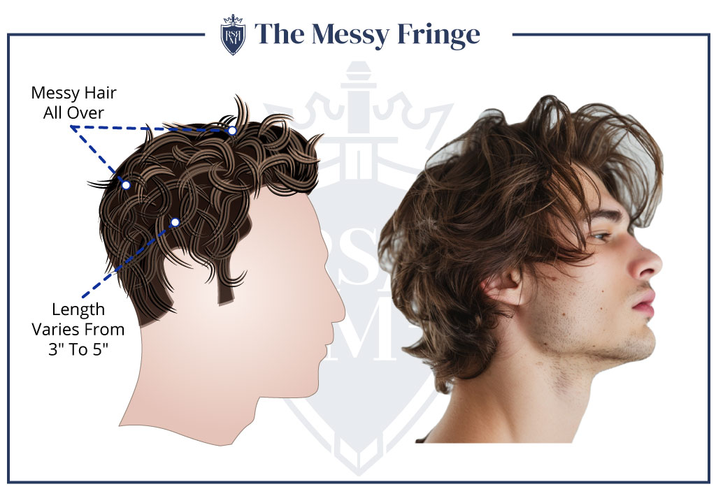 The messy fringe is a relaxed, relatively youthful style thatโs perfect for warm days. It involves longer hair on top with a fringe that falls naturally over the forehead.