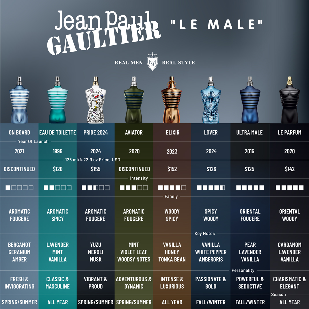 Le Male is a woody, aromatic fragrance that is perfect for any season. Top notes of lavender and mint give way to a heart of orange blossom and cinnamon, while base notes of sandalwood and vanilla add a touch of sweetness.
